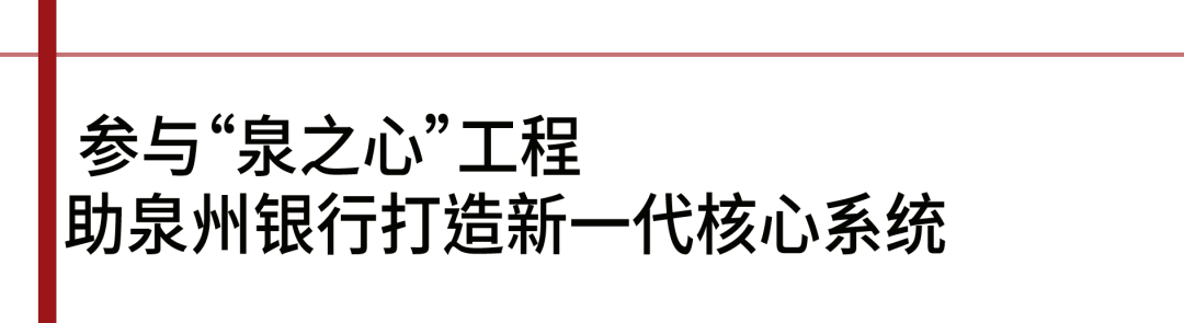 为落实国家金融安全要求、紧跟金融科技发展趋势、顺应数字化转型潮流,泉州银行同步开展新核心建设及新数据中心集成迁移两项工程。并延续“泉之道”企业文化,将两项工程统一命名为“泉之心”工程,着力打造高效的信息技术基座,磨炼复合型人才队伍,为泉州银行加快零售小微和数字化战略转型、谋求高质量发展提供源源不断的新动能。