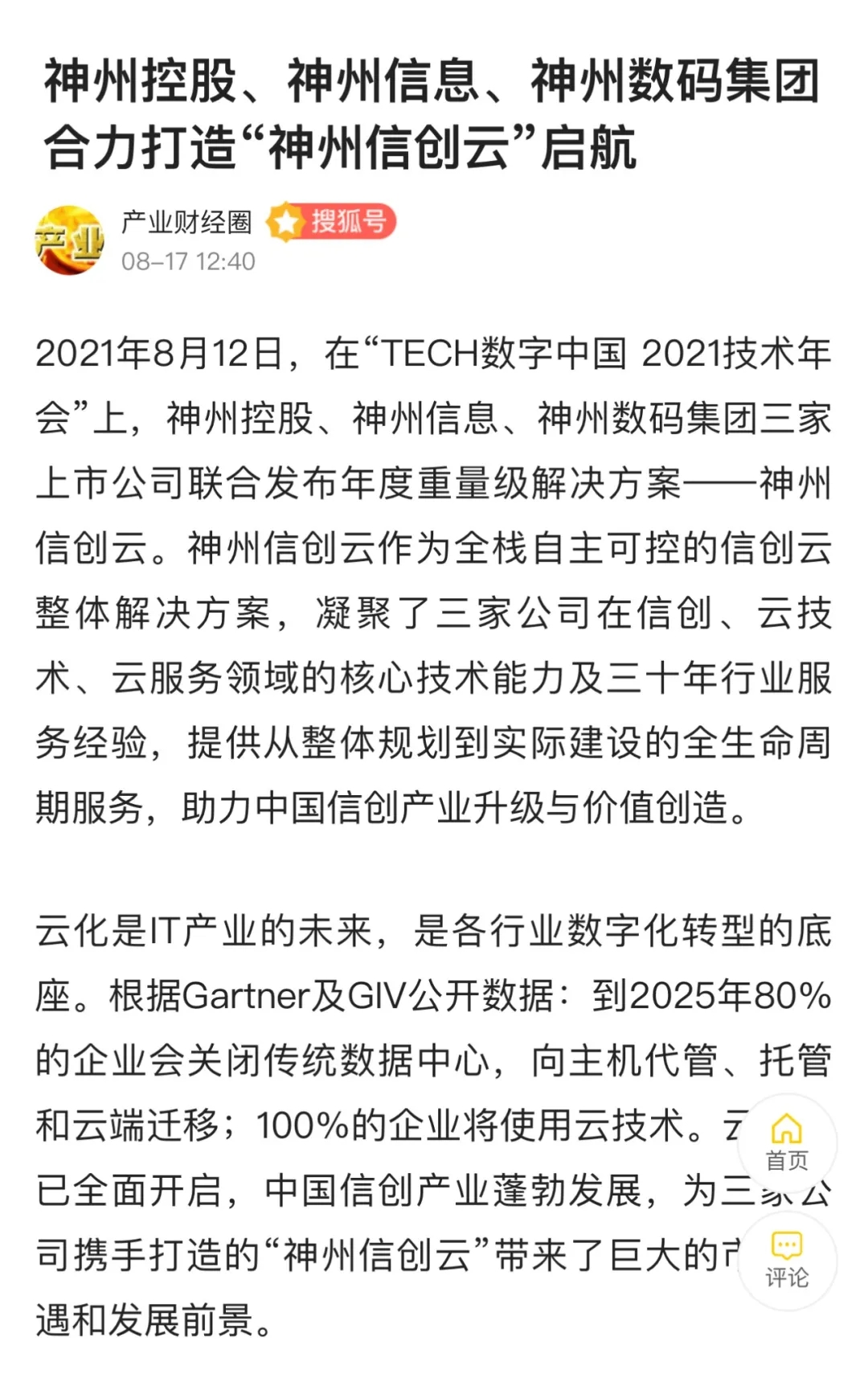 “数字中国 2021技术年会”云上举行 神州控股等联合发布 “神州信创云”